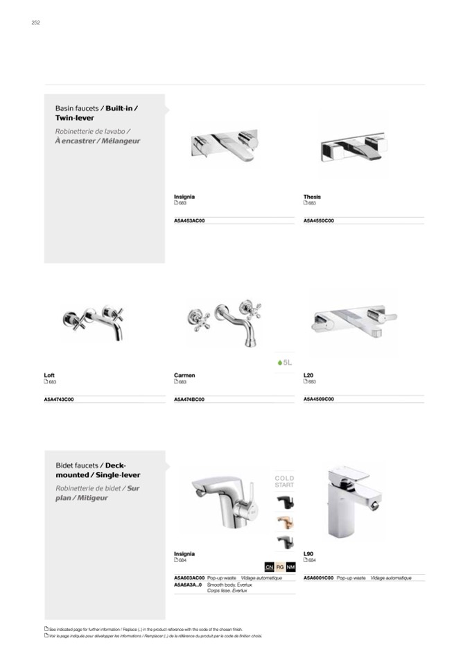 See indicated page for further information / Replace (..) in the product reference with the code of the chosen finish.