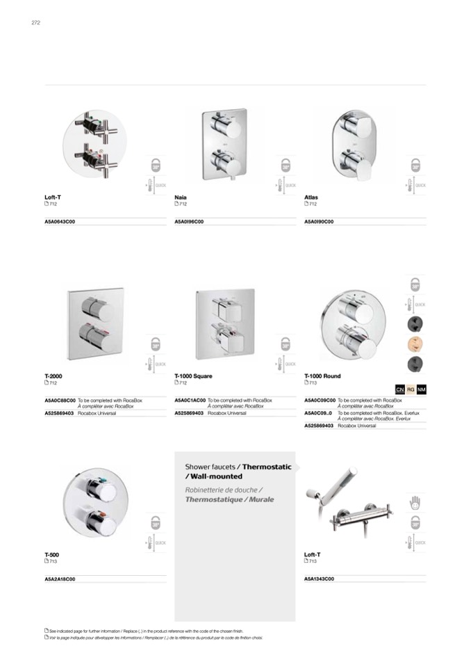 See indicated page for further information / Replace (..) in the product reference with the code of the chosen finish.