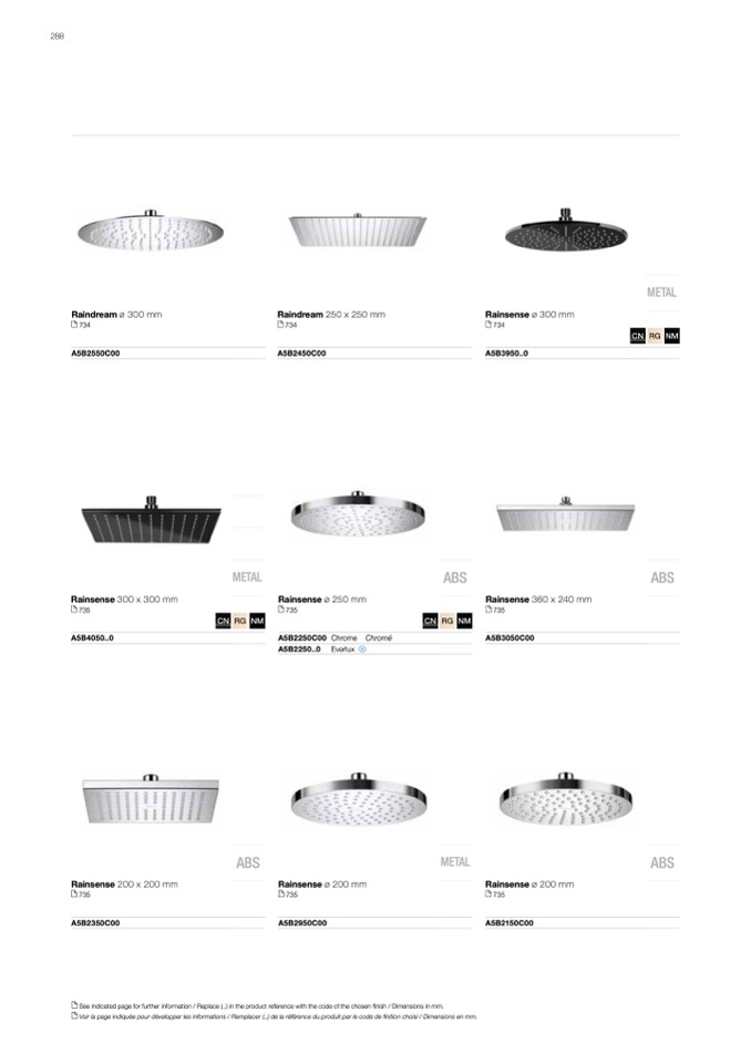 Voir la page indiquée pour développer les informations / Remplacer (..) de la référence du produit par le code de finition choisi / Dimensions en mm.