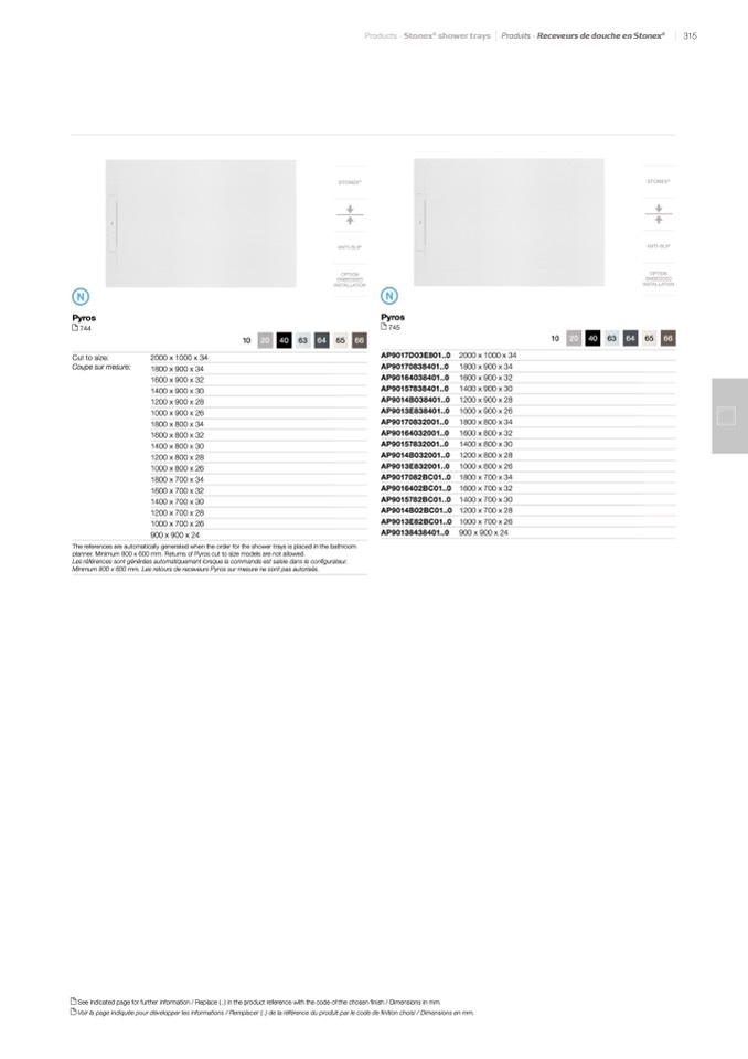 Minimum 800 x 600 mm. Les retours de receveurs Pyros sur mesure ne sont pas autorisés.