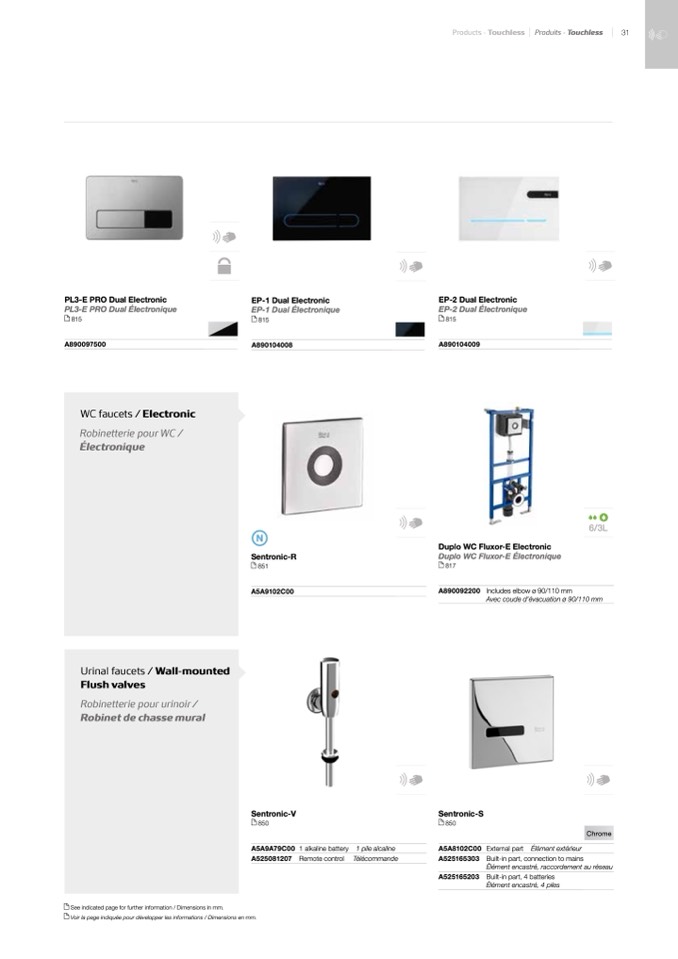 Voir la page indiquée pour développer les informations / Dimensions en mm.