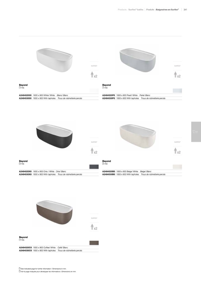 Voir la page indiquée pour développer les informations / Dimensions en mm.