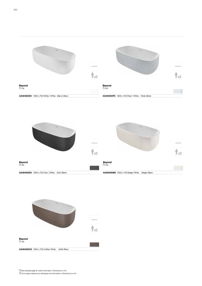 Voir la page indiquée pour développer les informations / Dimensions en mm.