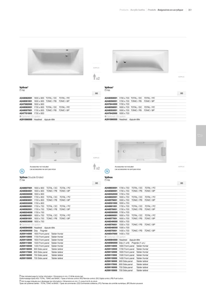 Types de systèmes balnéo : TOTAL,TONIC et BASIC / Types de commande: (CD) Commande à distance, (PC) Panneau de contr
