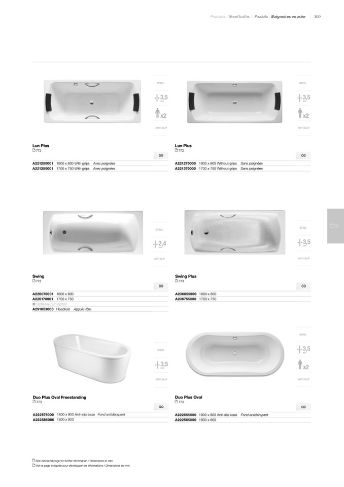 Products – Steel baths