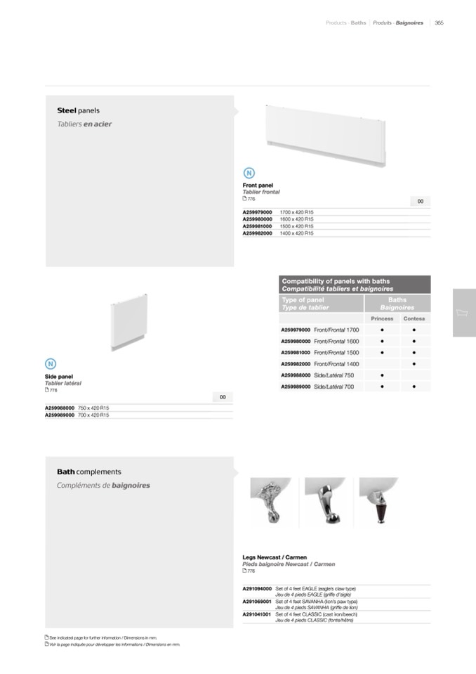 Voir la page indiquée pour développer les informations / Dimensions en mm.