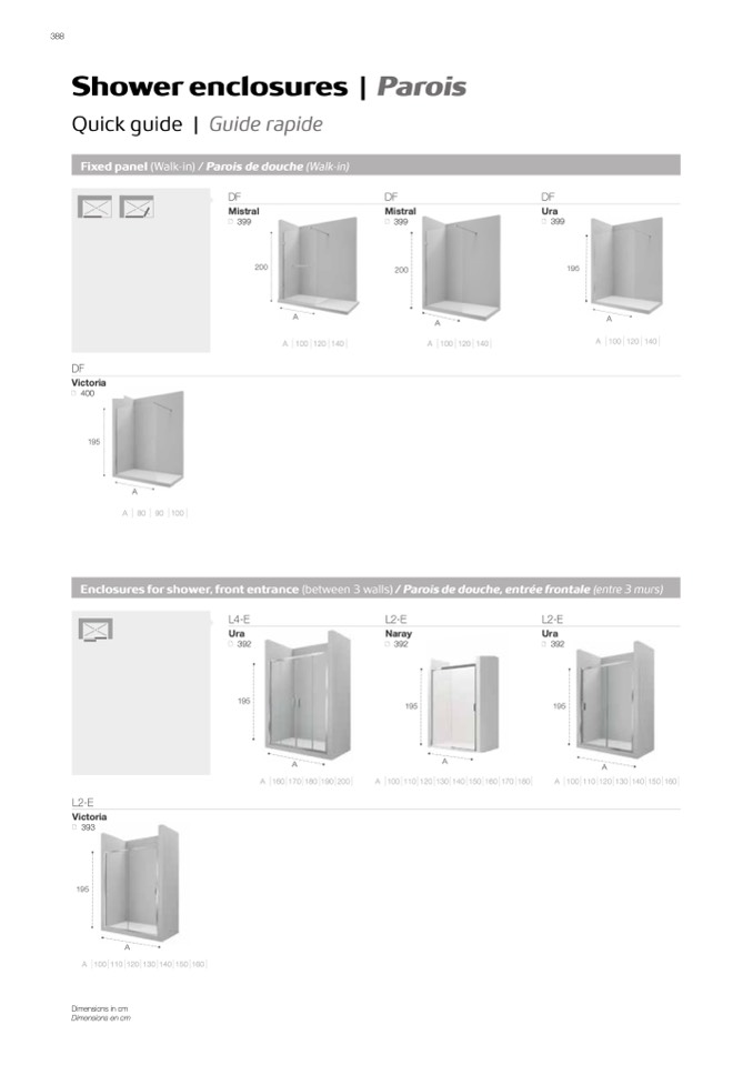 Line disponible con perfilería en acabado Cromado o Negro mate. Medidas en cm.