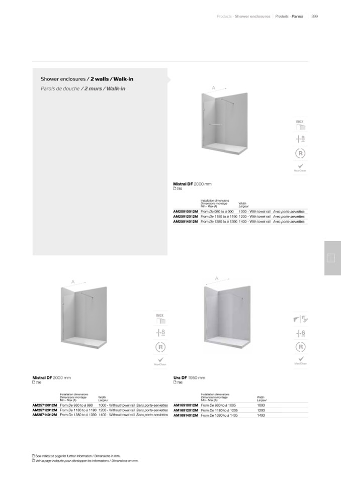 Voir la page indiquée pour développer les informations / Dimensions en mm.