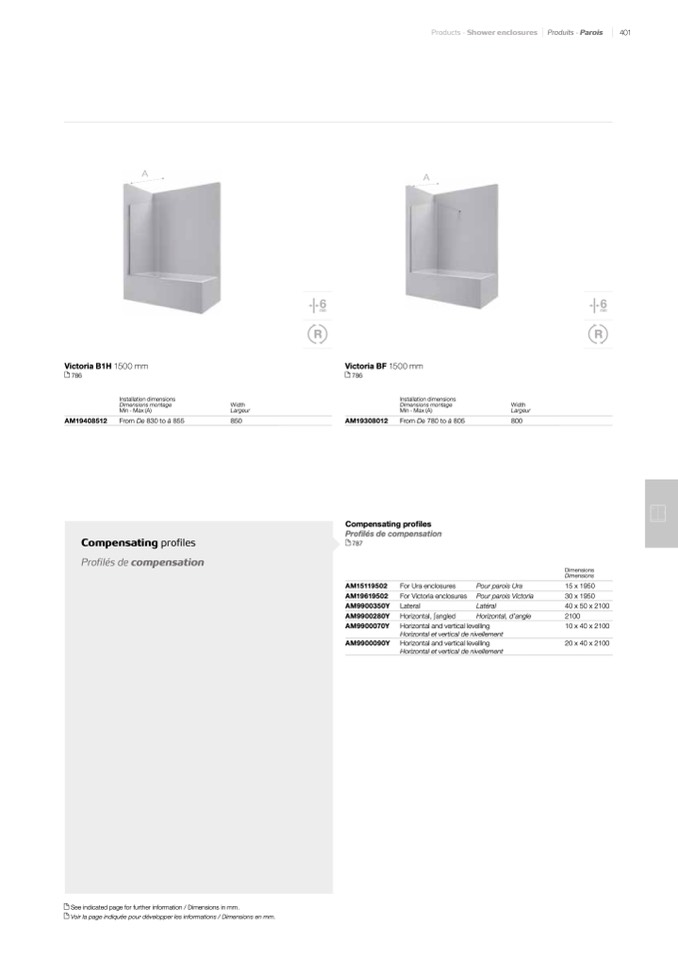 Voir la page indiquée pour développer les informations / Dimensions en mm.