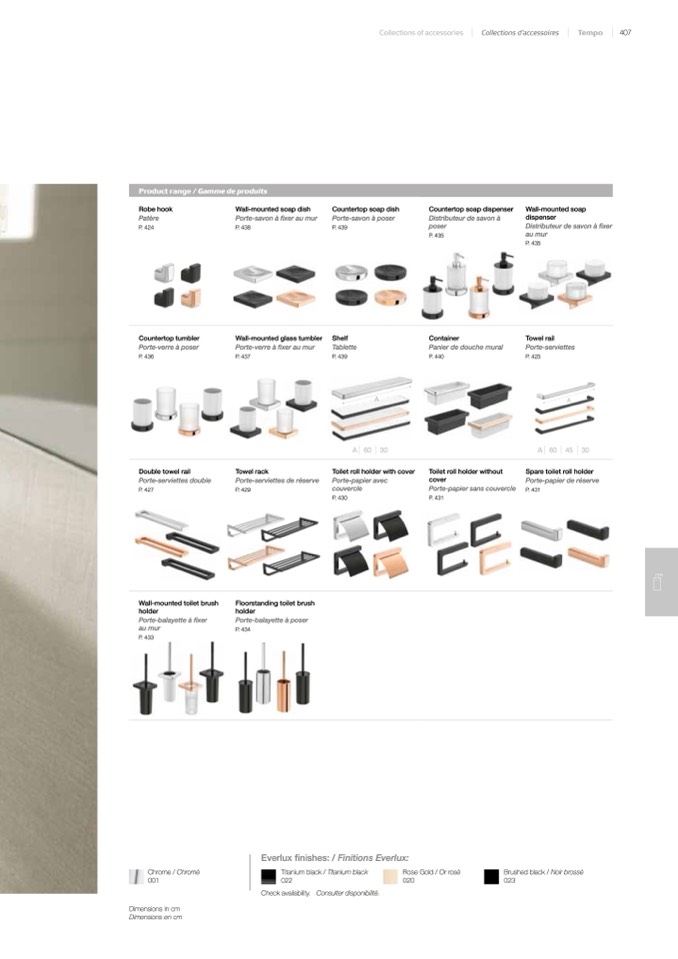 Everlux finishes: / Finitions Everlux:
