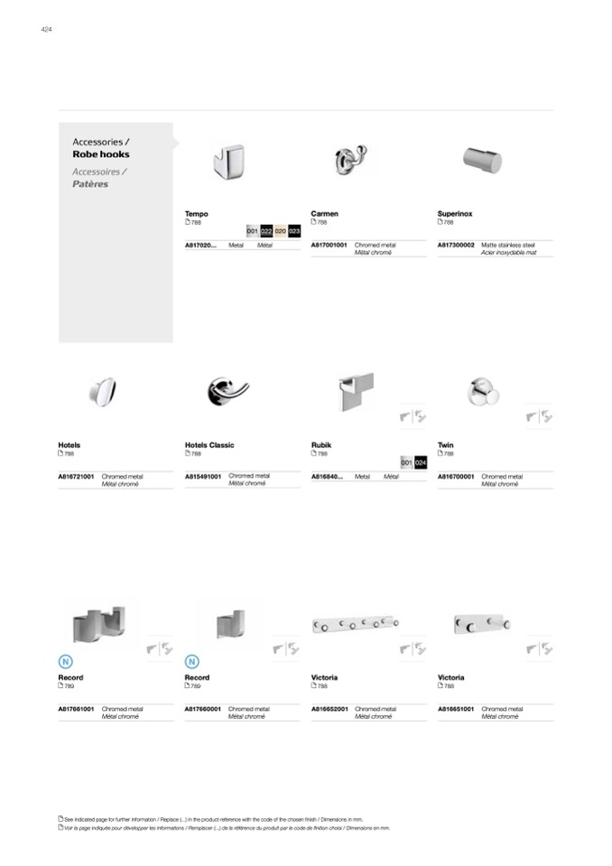 See indicated page for further information / Replace (...) in the product reference with the code of the chosen finish / Dimensions in mm.