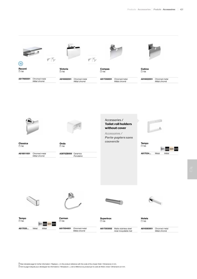 See indicated page for further information / Replace (...) in the product reference with the code of the chosen finish / Dimensions in mm.