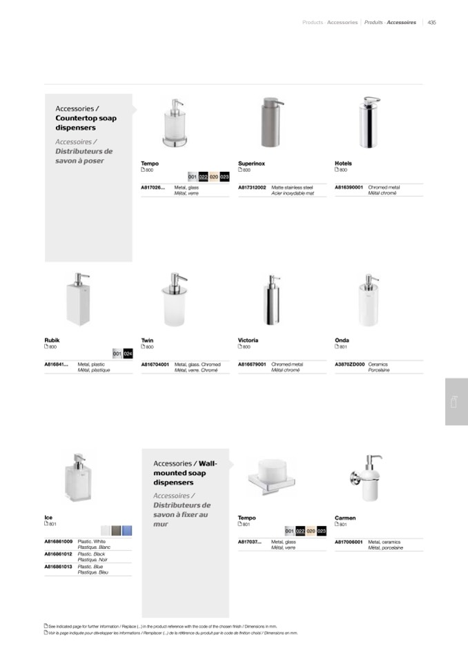 See indicated page for further information / Replace (...) in the product reference with the code of the chosen finish / Dimensions in mm.