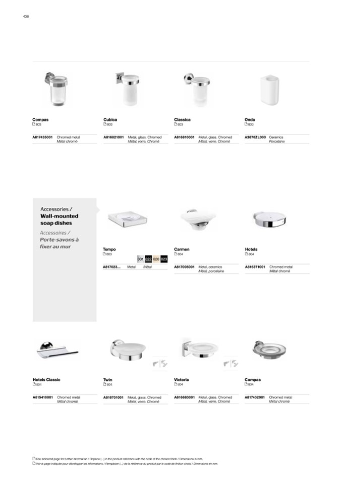 See indicated page for further information / Replace (...) in the product reference with the code of the chosen finish / Dimensions in mm.