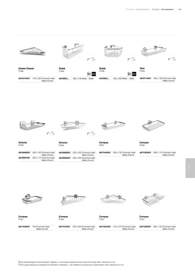 See indicated page for further information / Replace (...) in the product reference with the code of the chosen finish / Dimensions in mm.