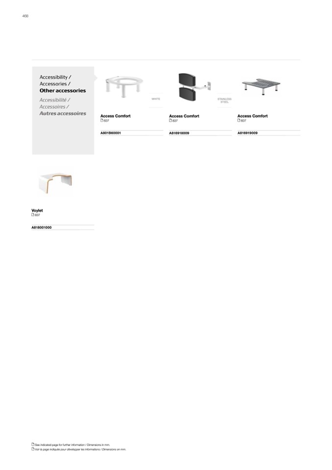 Voir la page indiquée pour développer les informations / Dimensions en mm.