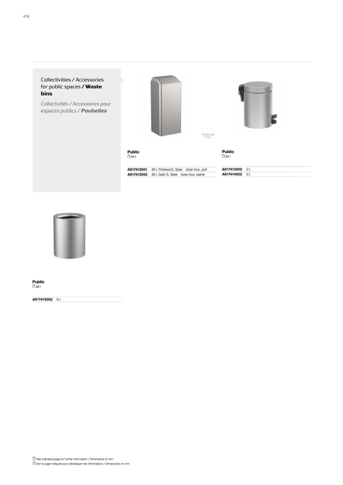 Voir la page indiquée pour développer les informations / Dimensions en mm.
