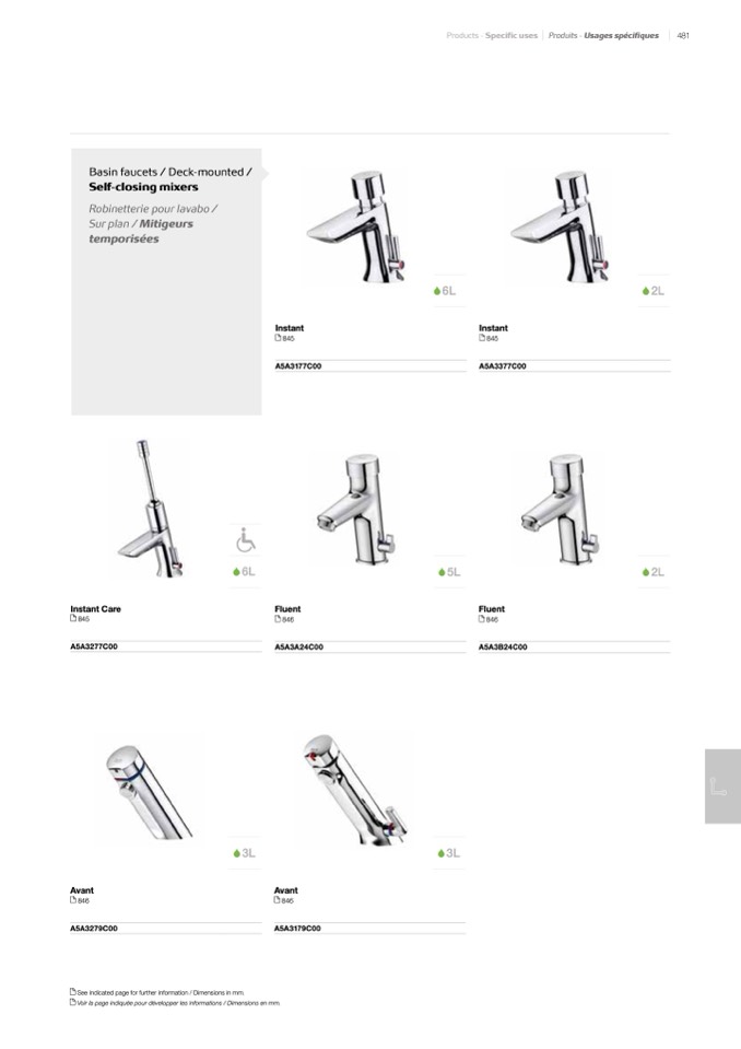 Voir la page indiquée pour développer les informations / Dimensions en mm.