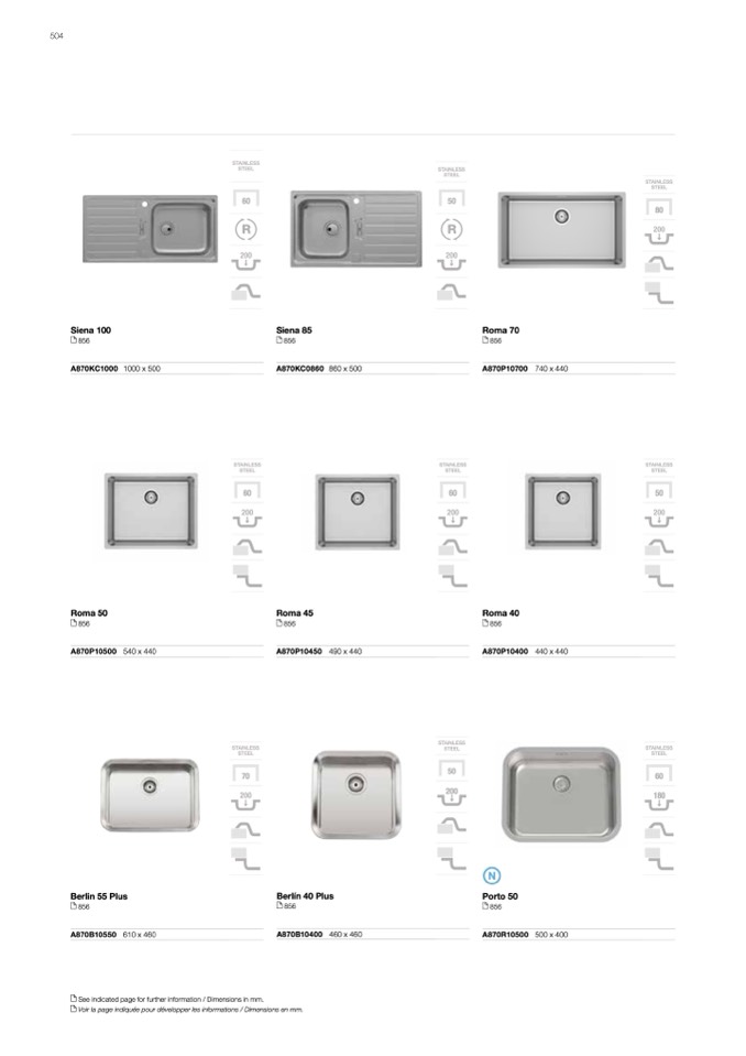 See indicated page for further information / Dimensions in mm.