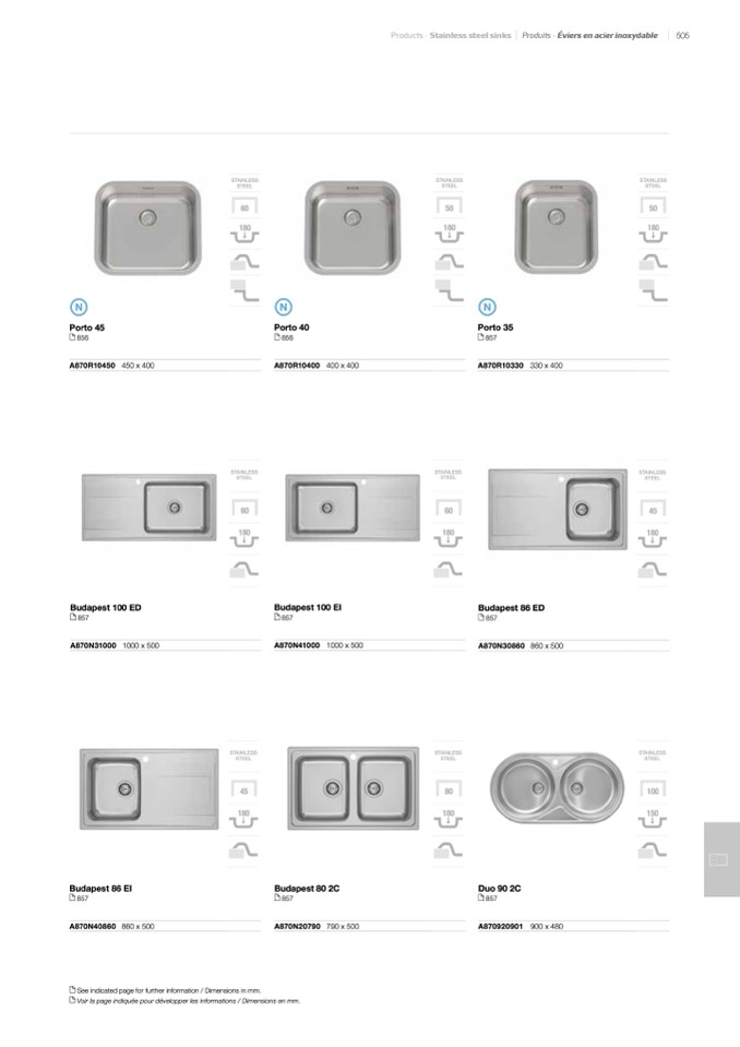 Voir la page indiquée pour développer les informations / Dimensions en mm.