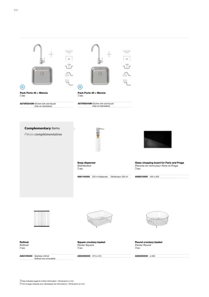 Voir la page indiquée pour développer les informations / Dimensions en mm.
