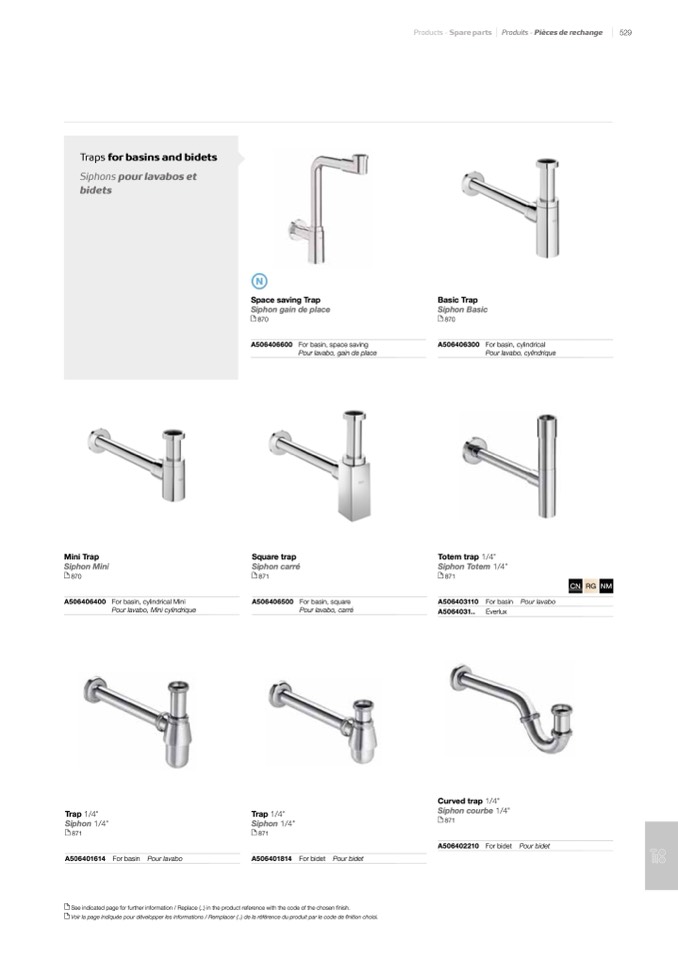 See indicated page for further information / Replace (..) in the product reference with the code of the chosen finish.