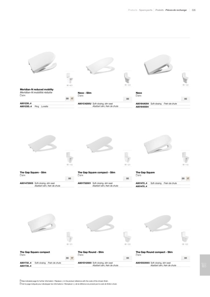 Voir la page indiquée pour développer les informations / Remplacer (..) de la référence du produit par le code de finition choisi.