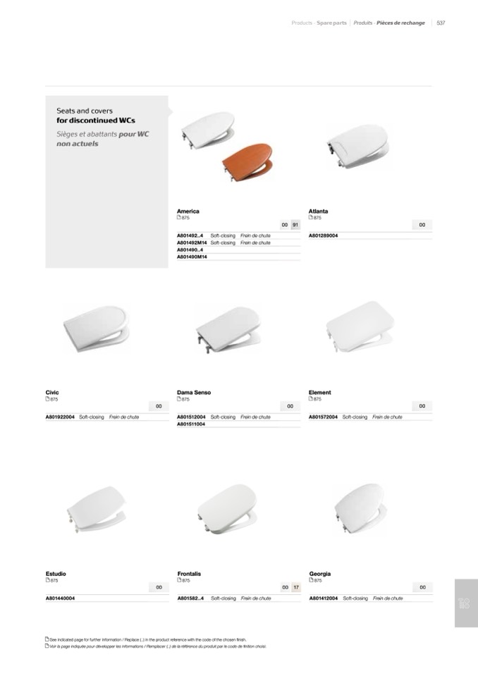 See indicated page for further information / Replace (..) in the product reference with the code of the chosen finish.
