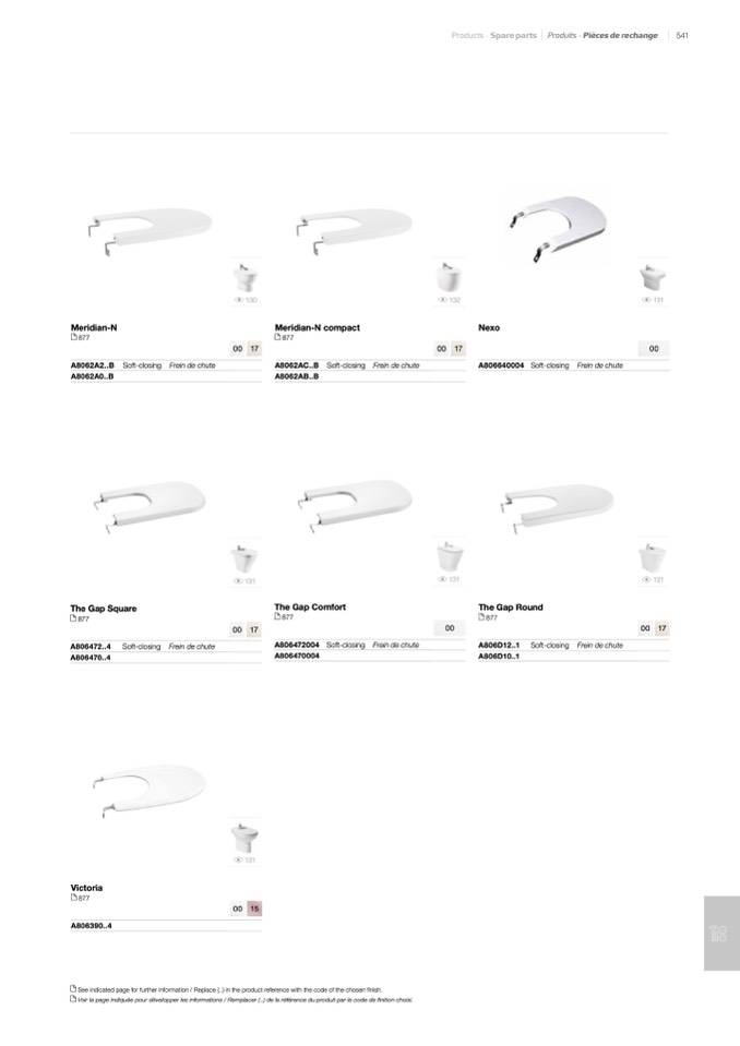 Voir la page indiquée pour développer les informations / Remplacer (..) de la référence du produit par le code de finition choisi.