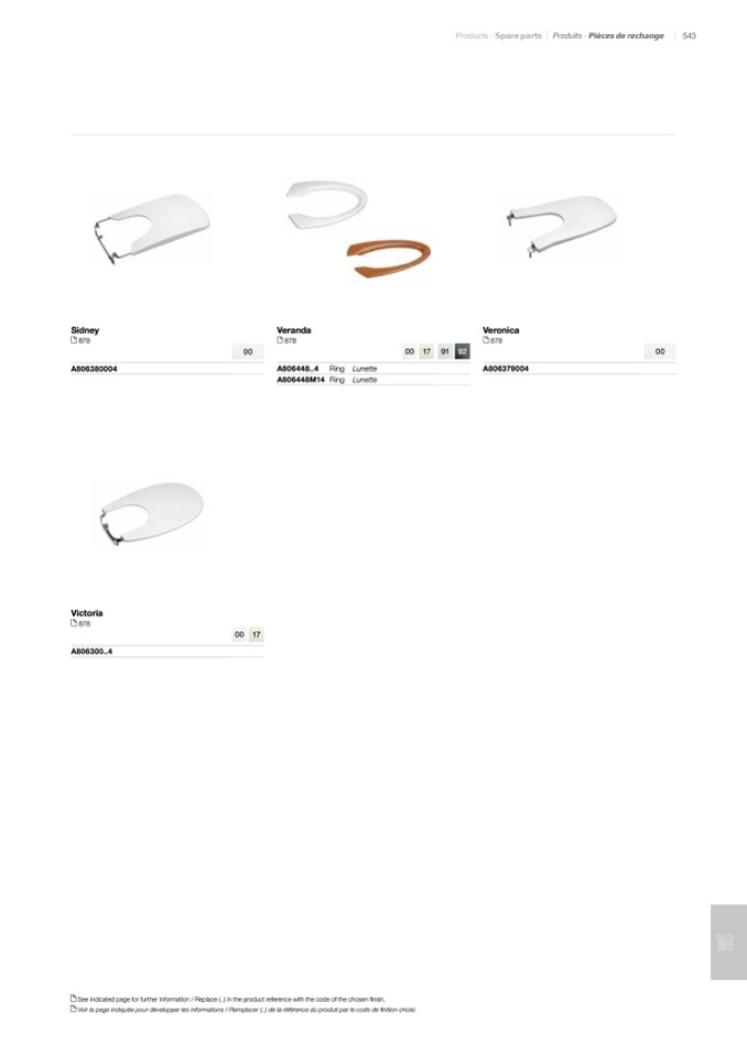 Voir la page indiquée pour développer les informations / Remplacer (..) de la référence du produit par le code de finition choisi.