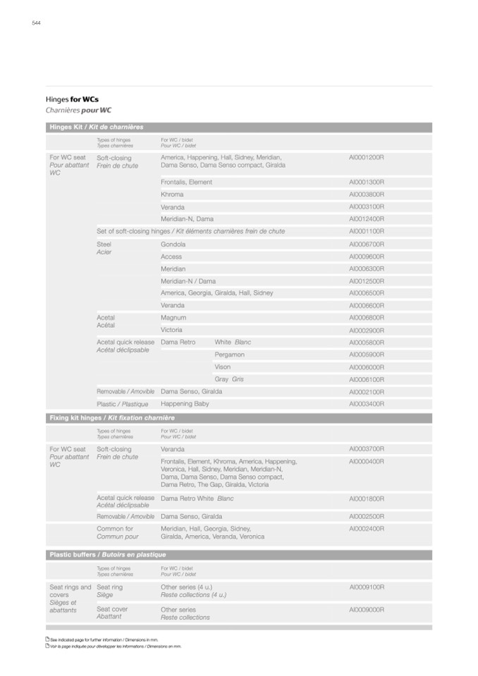 Voir la page indiquée pour développer les informations / Dimensions en mm.
