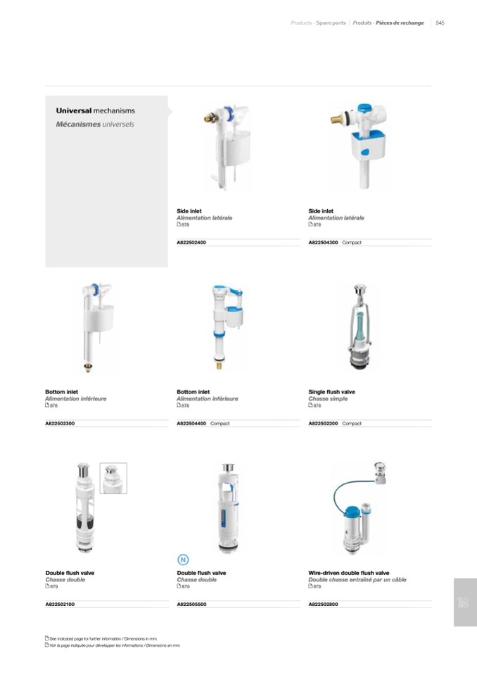 Voir la page indiquée pour développer les informations / Dimensions en mm.
