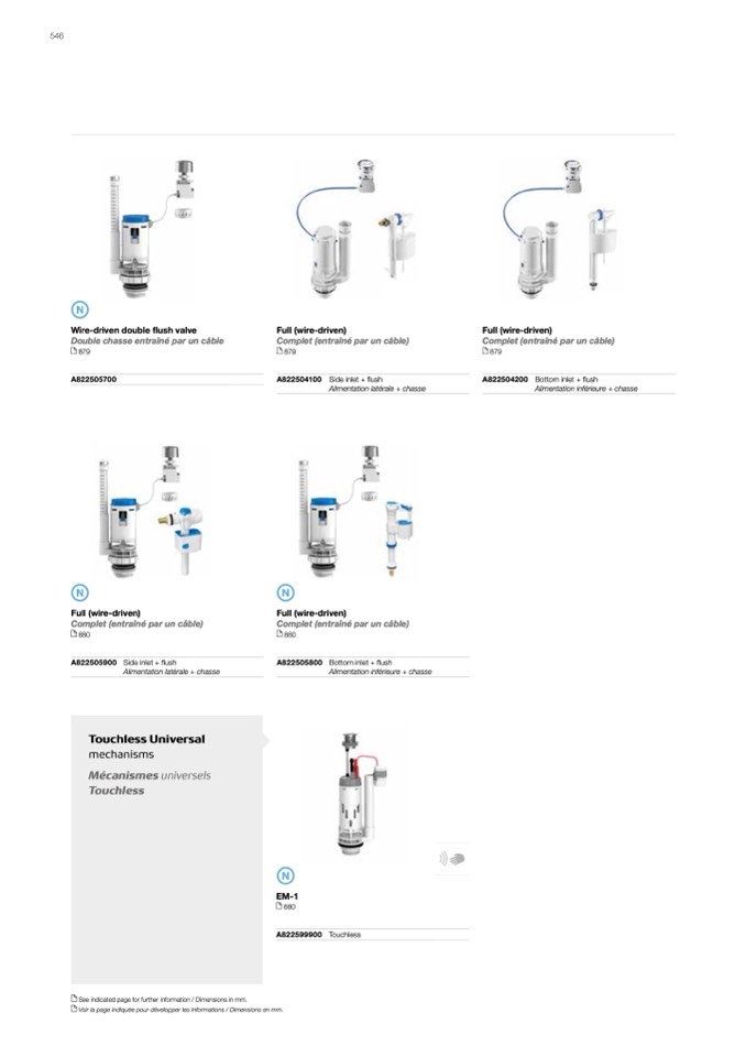 Voir la page indiquée pour développer les informations / Dimensions en mm.
