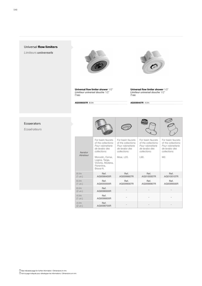 Voir la page indiquée pour développer les informations / Dimensions en mm.