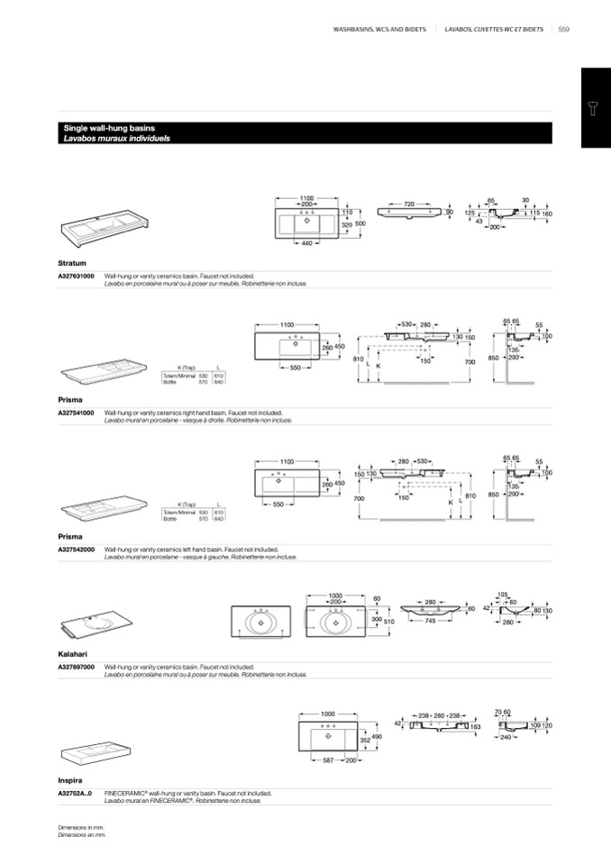 wall-hung or vanity basin. Faucet not included.