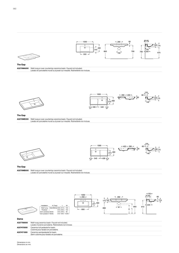 Wall-hung or over countertop ceramics basin. Faucet not included.