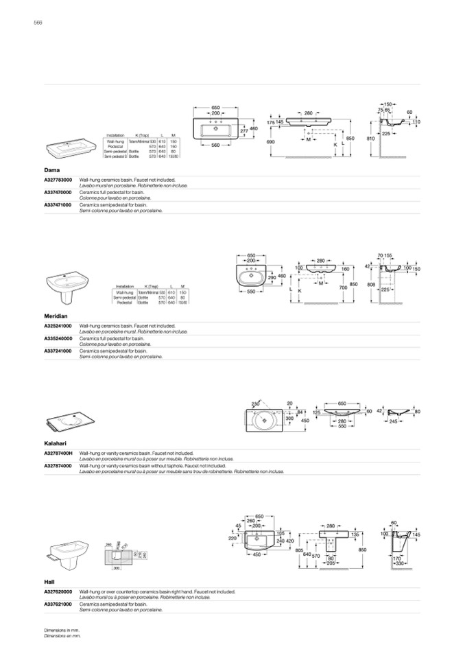 Wall-hung or vanity ceramics basin. Faucet not included.
