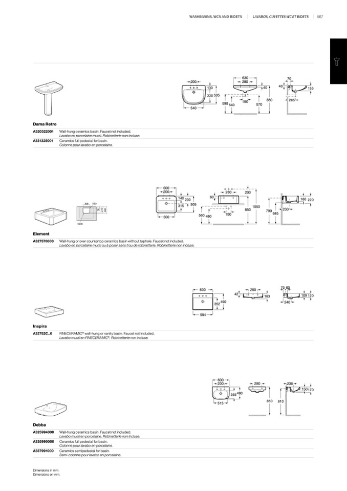 wall-hung or vanity basin. Faucet not included.