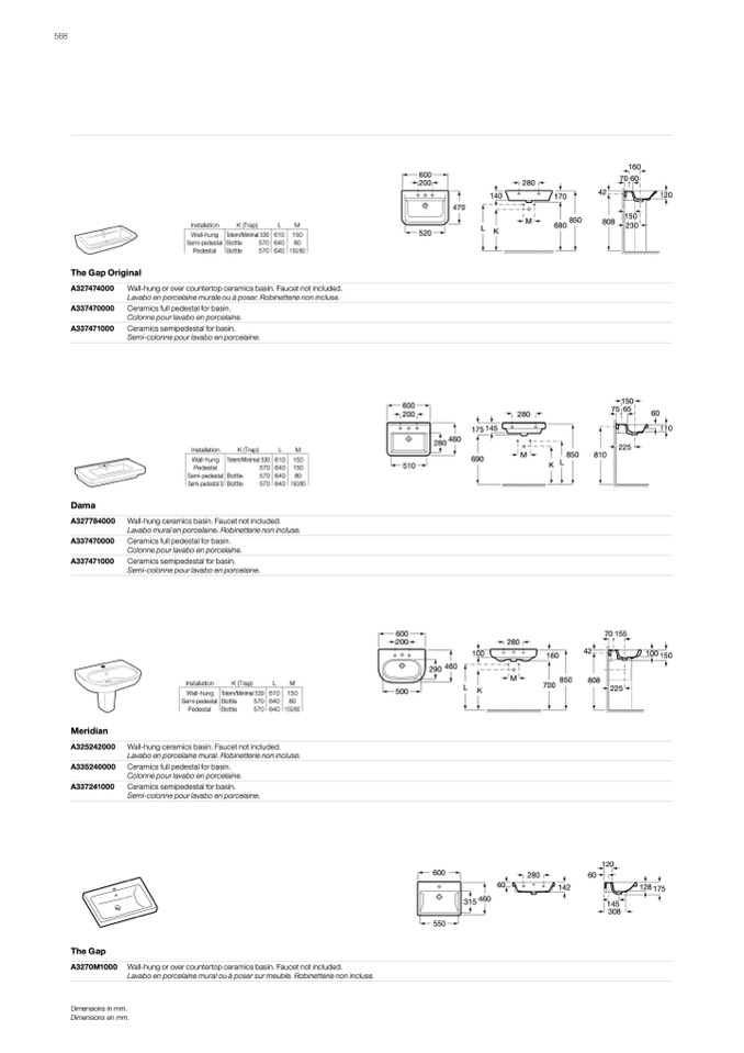 Wall-hung or over countertop ceramics basin. Faucet not included.