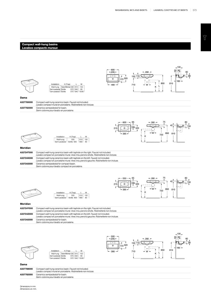 Compact wall-hung basins