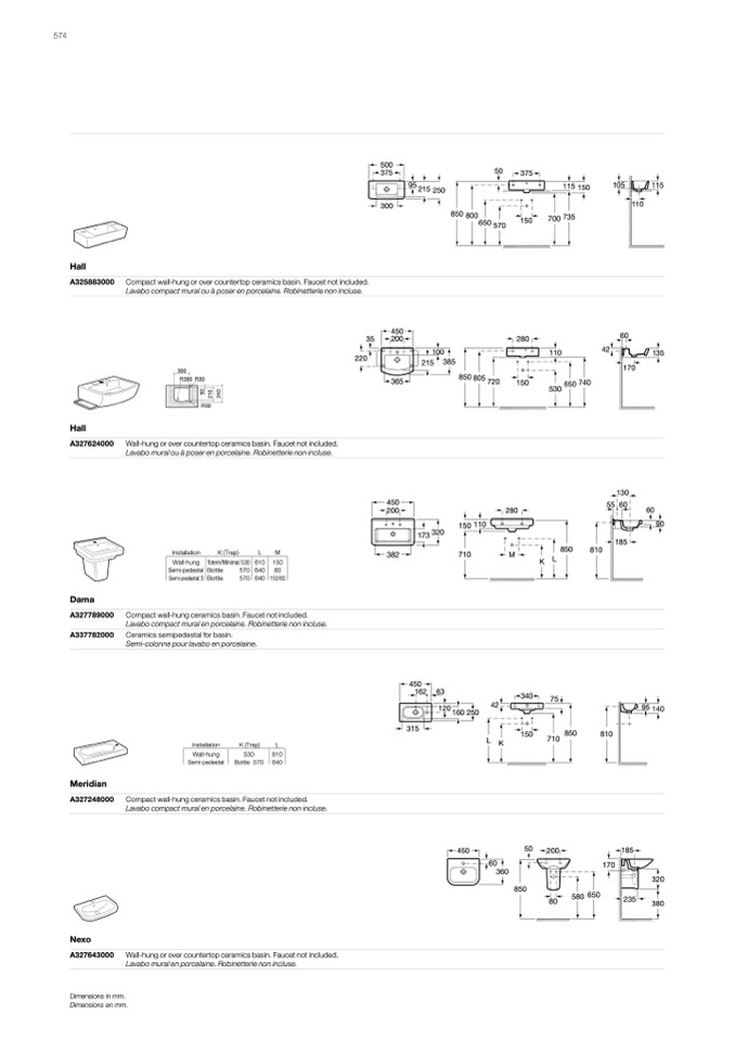 Wall-hung or over countertop ceramics basin. Faucet not included.