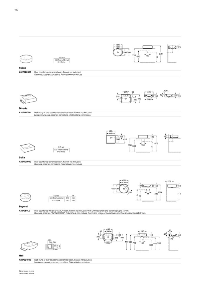 Wall-hung or over countertop ceramics basin. Faucet not included.