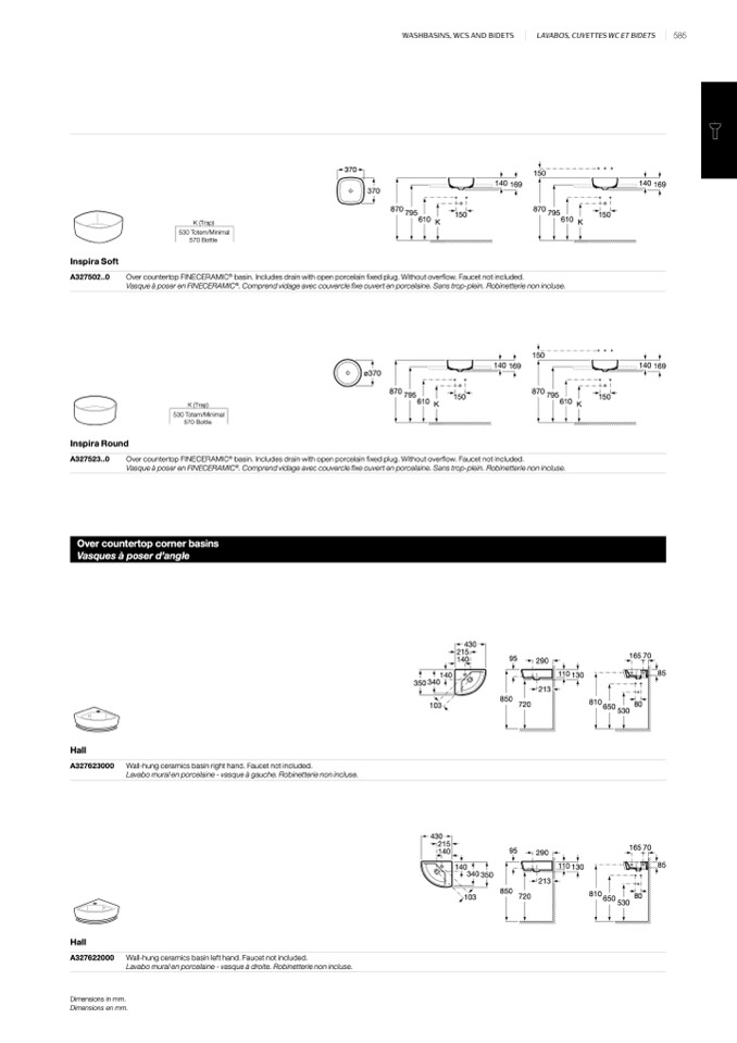 basin. Includes drain with open porcelain fixed plug. Without overflow. Faucet not included.