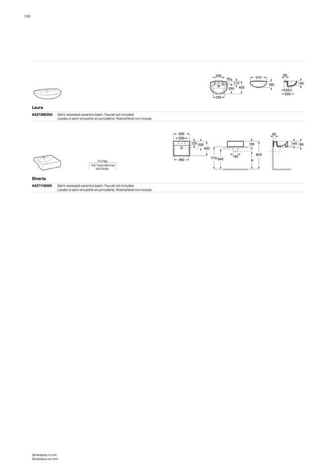 Lavabo à semi-encastrer en porcelaine. Robinetterie non incluse.