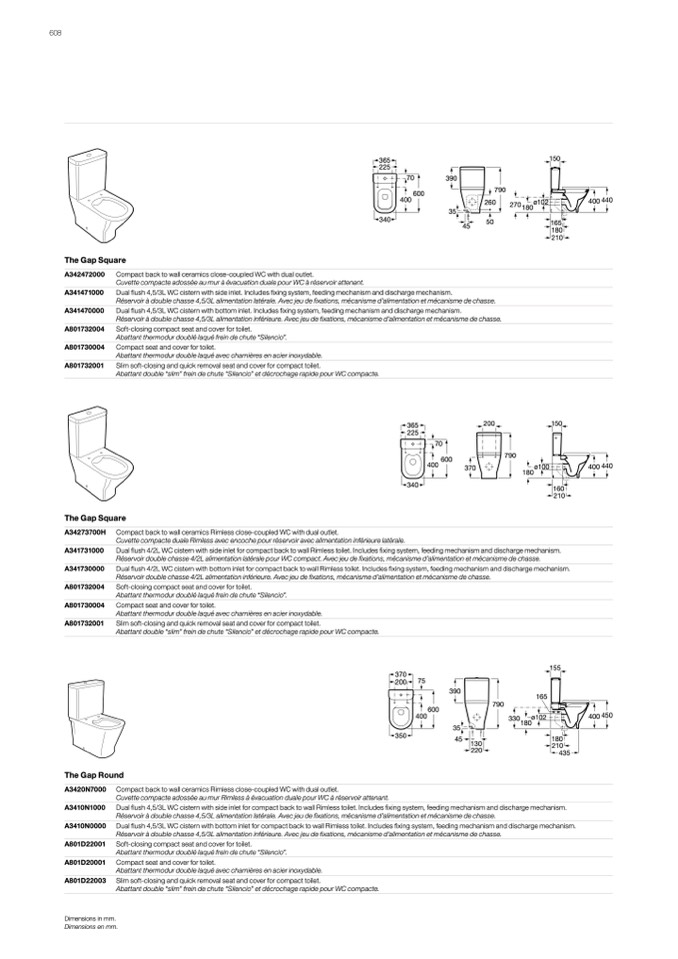 Compact back to wall ceramics Rimless close-coupled WC with dual outlet.