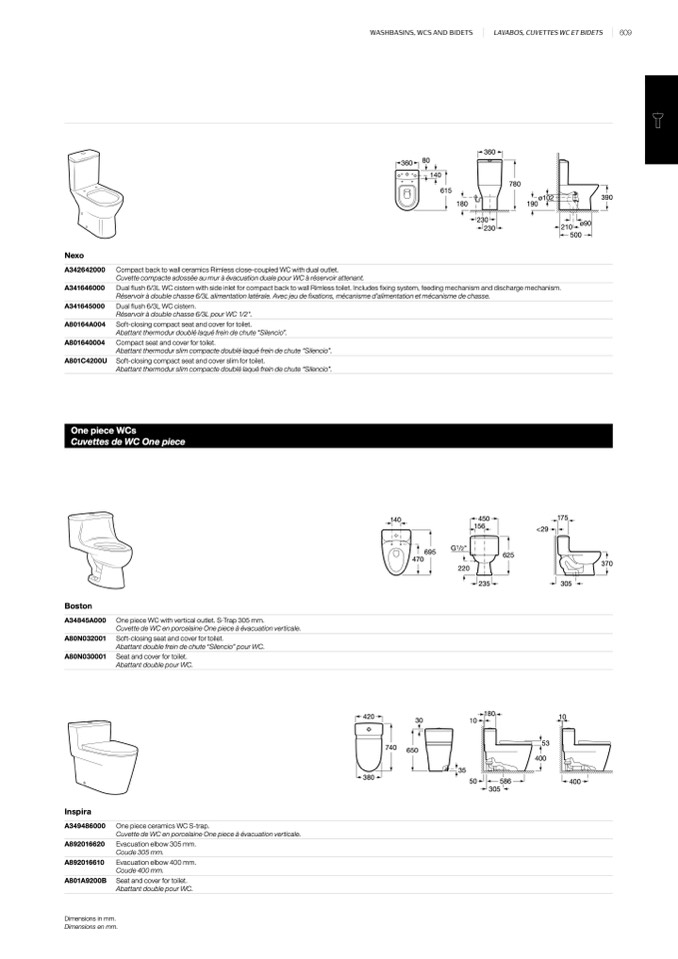 Compact back to wall ceramics Rimless close-coupled WC with dual outlet.