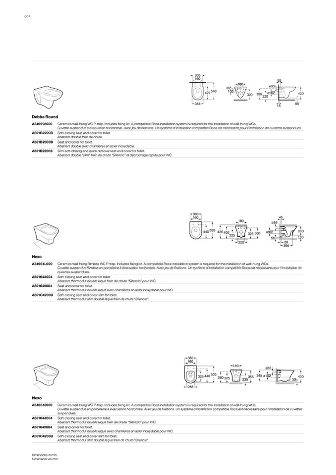 Ceramics wall-hung Rimless WC P-trap. Includes fixing kit. A compatible Roca installation system is required for the installation of wall-hung WCs.