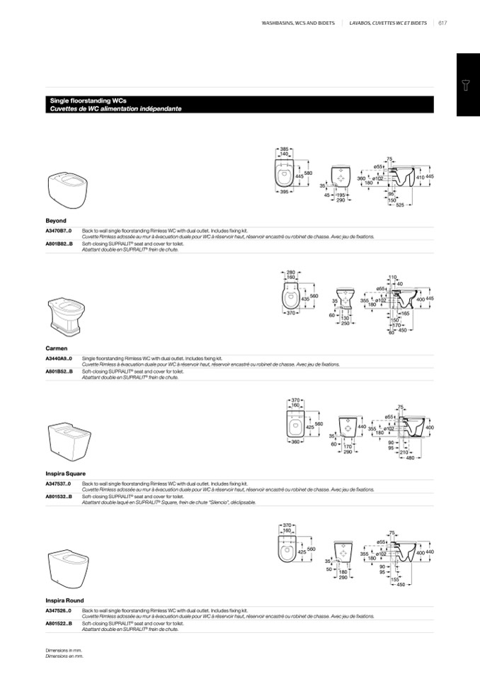 Single floorstanding Rimless WC with dual outlet. Includes fixing kit.