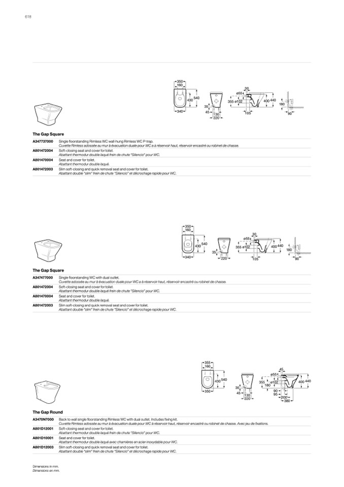 Single floorstanding Rimless WC wall-hung Rimless WC P-trap.