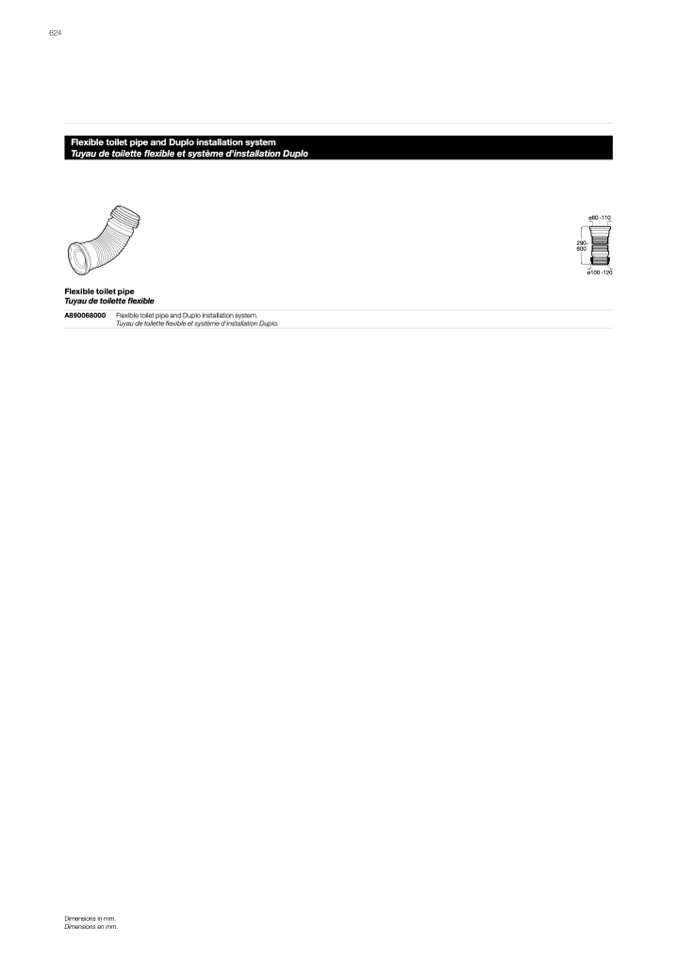 Flexible toilet pipe and Duplo installation system.